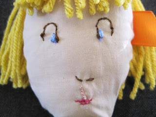 This little gal is for my friend Elena over at the CFA clinic.I first met her when Beech was born. She is an amazing force at the clinic because she helps parents prepare for their childs surgery. She educates them on what the surgery will be like pre and post op. She also helps parents learn to care and feed their cleft affected child and she is available to answer their concerns and questions--I do not know how she does it all? I embroidered a unilateral scar on to her. She is wearing a pillow case dress and her yarn hair is tied back with sweet pink ribbon. She also is taking some of her mice friends with her too.
