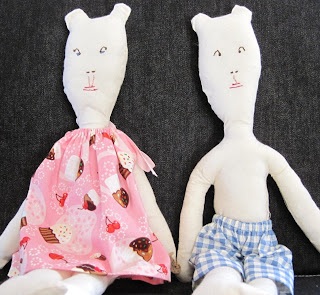 These are a set of mice for April too. I feel that some kids might respond more to animal dolls rather than "people" looking dolls. This is Mosie and Jules Mouse....named after my mom and husband!